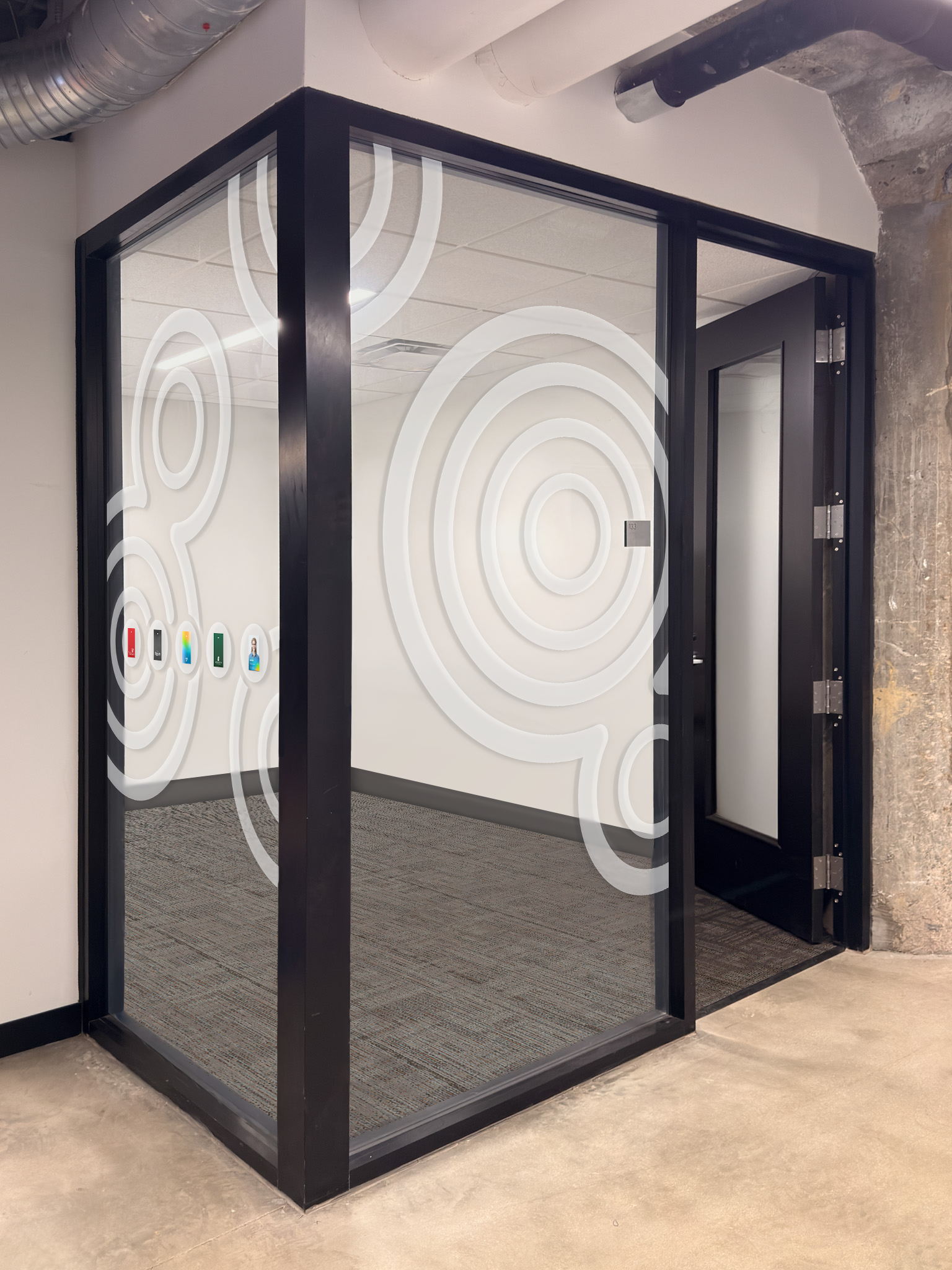 This is a mockup of what the decal would look like applied to the office windows